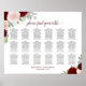 18 Table Burgundy Red & Pink Roses Seating Chart