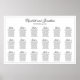This stylish 18 table wedding seating chart features a simple yet beautiful black and white design with fancy script calligraphy titles and a timeless classic feel. The minimalist and uncluttered layout includes elegant script calligraphy titles and a thin black border. There is space for up to 180 guests in the traditional 10 seats per table format. Beautiful way to welcome your guests while adding timeless style, class, and elegance to your wedding reception!