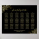 18 Table Wedding Seating Chart Black & Gold Frills