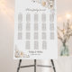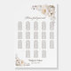 This elegant white floral seating chart will help your guests find their table. It is suitable for a wedding with 18 tables and up to 180 guests.