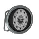 For truckers and those who wish they were. A belt buckle featuring a close up image of a truck wheel and the trucks full image superimposed in the center.