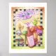 The WorCHESHIRE CAT - What did the WorCheshire Cat say to Alice when she asked what to cook for dinner? "It doesn't matter what you cook if you don't know how to cook it." And what did the colorful & cagey cat tell Alice to use in her recipe? Why, WorCheshire Cat Sauce, of course! A grinning, purple and pink cat pops out of a bottle of WorCheshire Cat Sauce while Alice stands atop a magic mushroom waving a skillet and spatula and the Caterpillar weaves atop another mushroom swinging a sauce pan, a salad bowl and a cooking whip, all against a backdrop of fun fungi. Perfect for the cook or chef with a sense of humor and a savory addition to any kitchen. Also fun for a children's room.