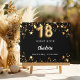 A stylish black background with faux gold stars. Add your name, and text. Age number is written with a balloon style font.