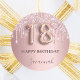 Elegant, classic, glamorous and girly for a 18th birthday party. A blush pink, gradient background. Decorated with faux glitter drips, paint dripping look. Personalize and add a name. With the text: Happy Birthday. The name is written with hand lettered style script. Number 18 is written with a balloon style font.