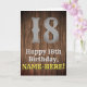 This American Wild West inspired and country look birthday-themed greeting card design features a large rustic look number "18", the message "Happy 18th Birthday,", a custom name, and a faux/imitation wood grain inspired look pattern background. The inside has a personalized birthday greeting message, or could perhaps be cleared and left blank if a message is to be written by hand instead. A customized birthday greeting card like this might be a fun way to deliver some birthday wishes to somebody who is celebrating their eighteenth birthday. [~Z0000469]
