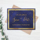A Save the Date card for an 18th birthday party for a guy, man, male. A dark blue background decorated with golden confetti and a faux gold and black frame. The blue color is uneven. Templates for a date and name/age 18. Golden colored letters. The text: Save the Date is written with a large trendy hand lettered style script.