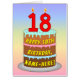 18th Birthday: Fun Cake & Candles, w/ Custom Name Card