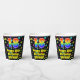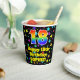 This fun and cheerful birthday themed paper cup design features a large number “18” with a rainbow spectrum gradient inspired pattern, along with the message “Happy 18th Birthday,”, and a custom name. The background features a colorful pattern inspired by a field of stars. Colorful, vibrant paper cups like this might be fun to use at a birthday celebration being held to celebrate somebody’s eighteenth birthday. [~Z0000540]