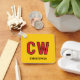 Sleek and durable, this stylish accessory features his initials in a red and yellow design.