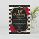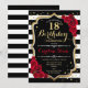 18th Birthday Invitation Black White Stripes Roses
