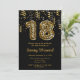 This elegant and glamorous birthday invitation features the number 18 in leopard print with gold confetti. The text combines handwritten script and modern sans serif fonts for a classy and sophisticated look.
