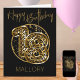 Personalized 18th birthday card with animal print foil balloons in black and gold. The trendy leopard print balloons are framed with black and gold confetti and Happy Birthday is hand lettered in gold. The template is ready for you to personalize the front of the card and add a message inside - or you can leave the inside blank if you prefer to handwrite on arrival.