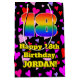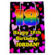 This colorful and joyful birthday-themed gift bag design features a large number “18” with a rainbow spectrum gradient inspired pattern, along with the message “Happy 18th Birthday,”, and an editable name. The background features a pattern of heart shapes with colors like purple, red, and pink. A cheerful birthday themed gift bag like this might be used when giving a gift or present in celebration of somebody’s eighteenth birthday. [~Z0000551]