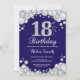 18th Birthday Navy Blue and Silver Diamond Invitation