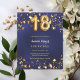 A modern, stylish invitation for a 18th birthday. A navy blue background, decorated with golden stars. The blue color is uneven. Personalize and add your name and party details.