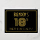 The front of this vintage-look and 1920s-1930s style inspired eighteenth birthday celebration foil invitation features a customizable name, a large art deco look inspired number “18TH”, the message “BIRTHDAY PARTY!”, and a border pattern consisting of lines. There is a black-colored background on the front by default, but it can be customized to a different color if desired. The back features personalized details about the event, such as the date, time, location, and any other information that may be relevant. Luxurious, elegant, personalized invitations like these might be used to invite guests to a birthday celebration/party being held to honor somebody’s 18th birthday. [~Z0000590]