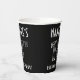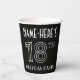 This elegant 1920s-1930s era inspired art deco look birthday-themed paper cup design features a custom name, along with the message “18TH BIRTHDAY PARTY!”. The number “18TH” has a fancy geometric lined appearance. Luxurious birthday themed paper cups like these might be used at a birthday party celebrating somebody’s eighteenth birthday, or some other 18th event. [~Z0000658]