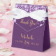 An elegant and glamorous 18th birthday favor box. Purple backdrop and ultra violet, lavender colored faux diamonds. With the text: Thank You! Templates for a name, date of birth and date of anniversary and age number. Golden letters.