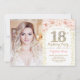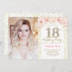 18th Birthday Party With Photo - Gold Pink Floral Invitation