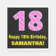 This fun and joyful birthday-themed paper napkin design features a large number "18" with a light pink and dark pink striped pattern containing heart shapes. It also features the birthday greeting message "Happy 18th Birthday,", and a custom name. Paper napkins like this might be fun to use at somebody’s 18th birthday celebration. It might also be a fun choice for somebody whose birthday falls on Valentine's Day (Feb. 14), due to its loving heart symbols and colors. [~Z0000436]