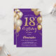 18th Birthday Purple and Gold Balloons Confetti Invitation