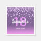 An elegant and glamorous 18th birthday party napkin.. Girly purple faux glitter nd pink gradient with a faux pink diamond sprinkle. Templates for a name, age 16 and a date. Date of birth or date of the party/anniversary. White and pink colored letters. The name is written with a hand-lettered style script.