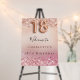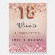 A welcome board for a girly and glamorous 18th birthday party. A rose gold background decorated with confetti. Personalize and add a name. Number 18 is written with a balloon style font.