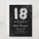 18th Birthday - Silver Balloons Black Invitation