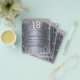 A modern, stylish and glamorous invitation for a girl's 18th birthday party. A faux silver looking background, decorated with glitter dust. Personalize and add your name nad party details. Number 18 is written with a balloon style font, script.