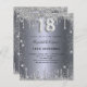 A modern, stylish and glamorous invitation for a girl's 18th birthday party. A faux silver looking background, decorated with drips. Personalize and add your name nad party details. Number 18 is written with a balloon style font, script.