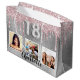 18th birthday silver pink glitter drips photo name large gift bag