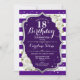 18th Birthday - Silver Purple White Stripes Roses Invitation