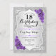 18th Birthday - Silver Stripes Purple Roses Invitation