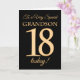 A chic 18th Birthday Card for a 'Very Special Grandson', with a number 18 composed of gold-effect numbers and the word 'Grandson', in gold-effect, on a black background. The inside message, which you can change if you wish, is 'Happy Birthday'