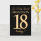18th Gold-effect on Black for Grandson Birthday Card