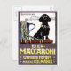 C. 1910 advertising poster for Colmaria Maccaroni. The poster depicts a Dachshund resisting the urge to eat the full pot of hot pasta resting on a kitchen counter.