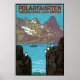 C. 1910 vintage poster from the North German Lloyd Ocean Liner company advertising Polar voyages. In the foreground a few Puffins are seen and in the background an Ocean Liner.