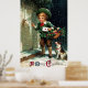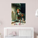 Charming 1911 print depicting a young boy and his dog are seen delivering Christmas cards and presents. The greeting " A Merry Christmas " printed along the bottom.