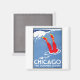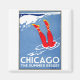 C. 1912 poster promoting travel to Chicago, Illinois. The poster depicting a young lady diving into Lake Michigan and reads ' Chicago - The Summer Resort '.