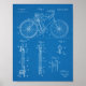 1918 Vintage bicycle US patent technical design illustration. Chainless shaft drive bike. The shaft drive gears can be disengaged to allow coasting.