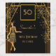 Elegant faux gold and black glamorous label for a retro 1920's themed 50th birthday party! Decorated with a 1920's style flapper girl, art deco style pattern and fireworks. Personalize and add age 50, a name and a date. Golden text.