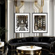 Decor in rooms 1920s Art deco print. A striking composition of bold, intersecting geometric shapes, metallic accents, and sleek black and white hues, juxtaposed in a dynamic, modernist arrangement, with sharp, geometric lines, contrasting shapes, and a sense of dynamic tension.