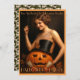 This Halloween invitation design template is in the Art Nouveau and Art Deco styles and has the look and feel of the roaring twenties, the era of speakeasies and flapper girls. It features an Art Nouveau flapper girl lighting a Jack O' Lantern derived from a vintage 1924 magazine cover art. This image can easily be replaced with your own. All text can be personalized and the background colors can be customized in this template.