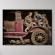 Vintage image of teens wearing overalls and heels as the work on an old car.