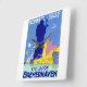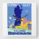 Vintage 1927 poster celebrating the centennial of Bremerhaven, Germany which was founded in 1827. The design depicts a harbor view of the city and the Roter Sand lighthouse in the background.