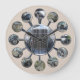 1934 Cabriolet Hupmobile Round Wall Clock-is created with assorted photography shots inside and out of the antique Hupmobile vehicle. Each clock number rests on a unique shot of this pristine car. The clock numbers are made of a steel pattern and extrude out from the center. The photos are trimmed in metal as well. The center of clock has two options, keep the one you like and delete the other. One is the grill front of the vehicle, one is the front side exterior view. The background of this clock is a creamy off-white leather look.