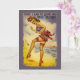 This very cute and funny postcard from World War II days shows a girl at the beach in patriotic bathing clothes with a big bow on the back of her bathing suit and the words, "Sorry, I Had to Leave My Beau Behind!" Reprinted on this greeting card. Add you own words inside and create a funny card.