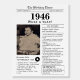 Say happy birthday with this unique 1946 party welcome sign in a Newspaper style. Includes a photo and a collection of fun facts and world news from the year of their birth. Designed to resemble a vintage newspaper in classic black and white style. A cute and fun way to celebrate the 1940s!