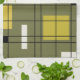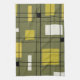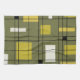 A midcentury modern abstract pattern with black lines and colorful square and rectangle shapes in chartreuse and avocado green.