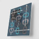 1950s Abstract Art Hollow Rocks Teal Square Wall Clock